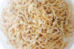 海參花是海參卵。對于海參花,以前人們很少注意到,更談不上珍惜了(就像朝陽人用珍貴的樹化石砌豬圈),特別在我國,人們食用海參,無論是飽口福還是養生保健,通常都是選擇海參皮肉(體壁),而海參體內的腸及卵等內臟則被廢棄掉了。而在國外,尤其是日本的人,則把海參的腸和卵利用到了極致。他們把海參腸卵稱美譽為“海參花”,或者先用其沏茶、泡酒,然后再煨湯,或者把新鮮的“海參花”鹽漬發酵制成參花醬,在市場上價格特別昂貴。