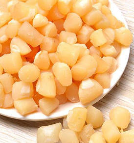 干貝中優質新鮮的,呈淡黃色,如小孩指頭般大小。
